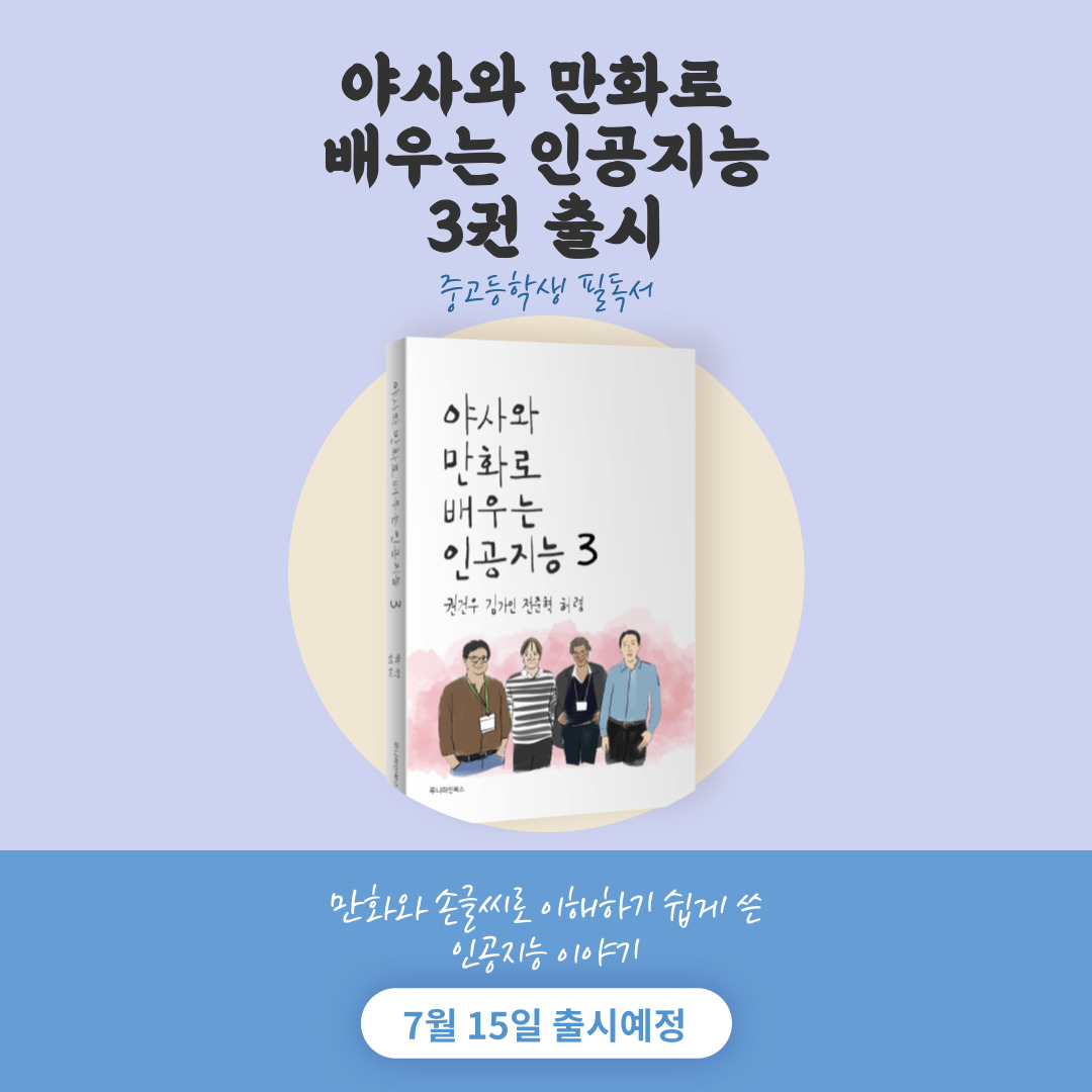 '야사와 만화로 배우는 인공지능' 3권 출시 소식을 알려드리기 위해 찾아왔습니다!