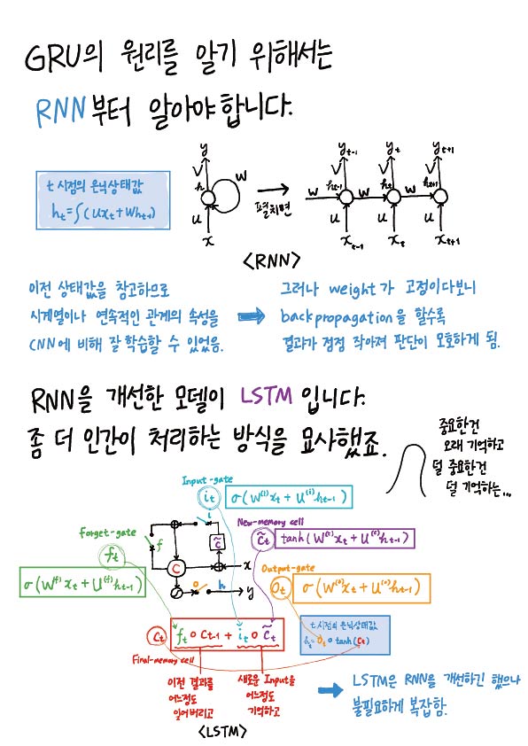 GRU의 원리를 알기 위해서는 RNN부터 알아야합니다.