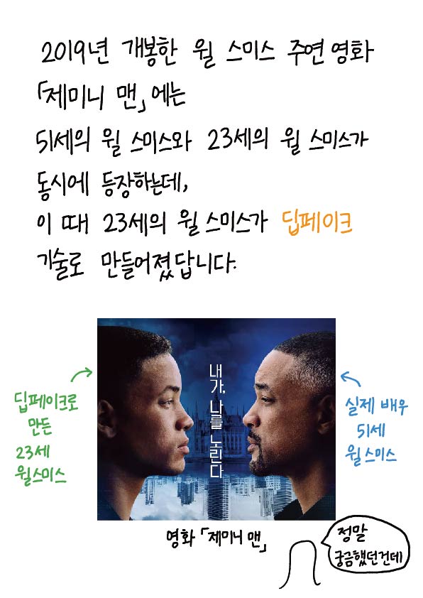 2019년 개봉한 윌 스미스 주연 영화 「제미니 맨」에는 51세의 윌 스미스와 23세의 윌 스미스가 동시에 등장했는데,