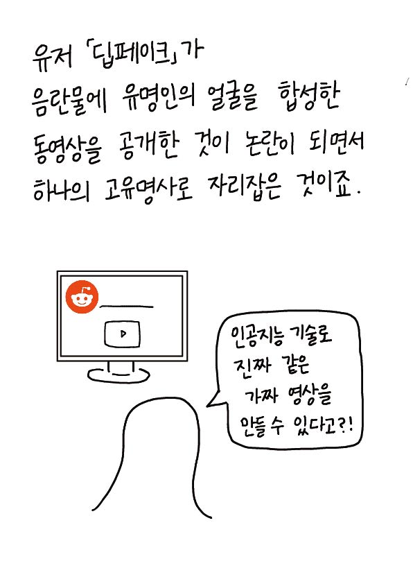 유저 「딥페이크」가 음란물에 유명인의 얼굴을 합성한 동영상을 공개한 것이 논란이 되면서 하나의 고유명사로 자리잡은 것이죠.