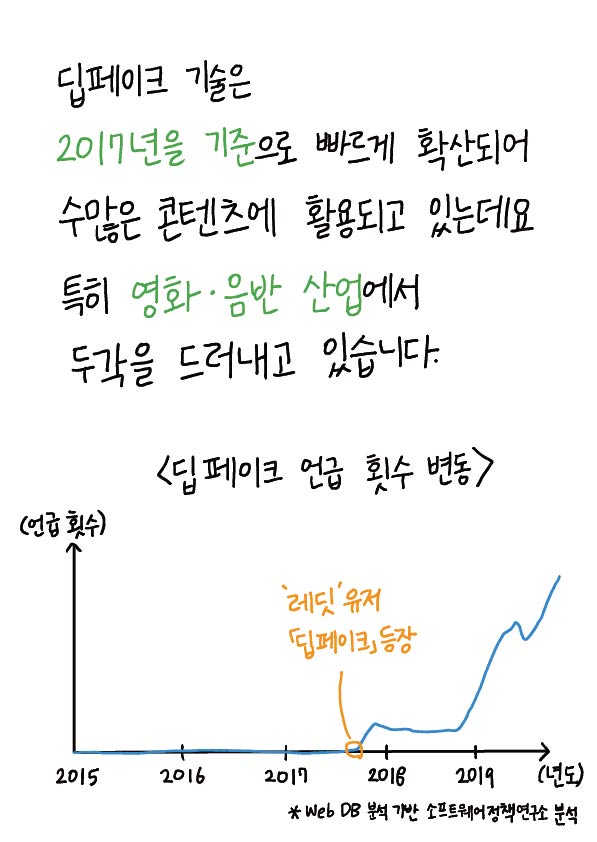 딥페이크 기술은 2017년을 기준으로 빠르게 확산되어 수많은 콘텐츠에 활용되고 있는데요.