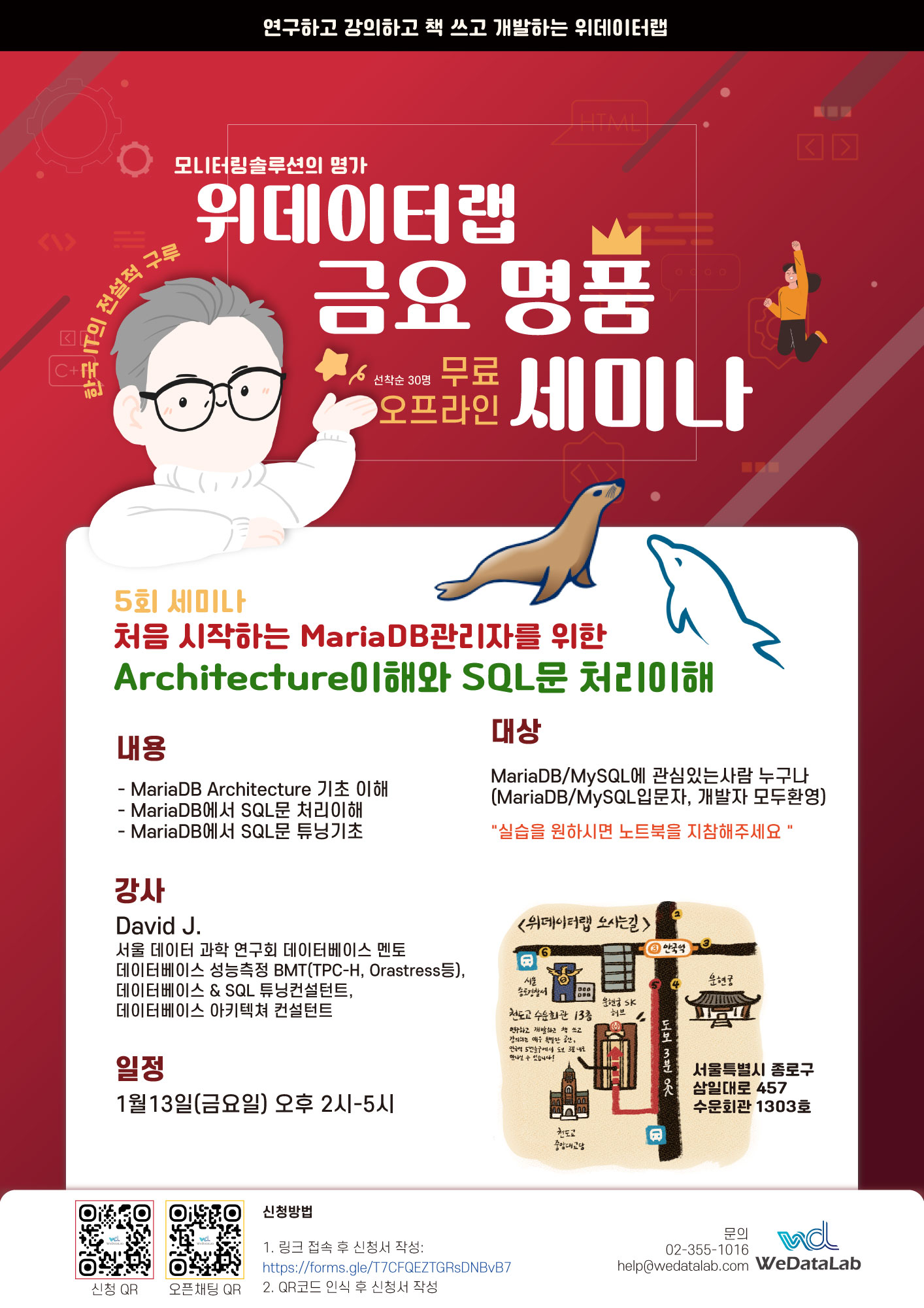 앞으로도 위데이터랩에서는 데이터베이스(MariaDB, PostgreSQL), 빅데이터/인공지능 관련 유익한 강의들이 계속 제공될 예정이며,