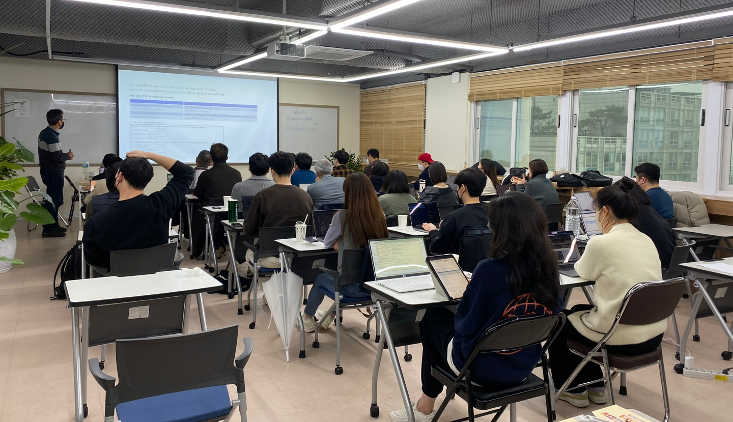 이번 세미나의 주제는 “처음 시작하는 MariaDB관리자를 위한 Architecture이해와 SQL문 처리 이해“ 였으며, 이론 설명과 실습을 위주로 약 3시간 정도 강의가 진행되었습니다.