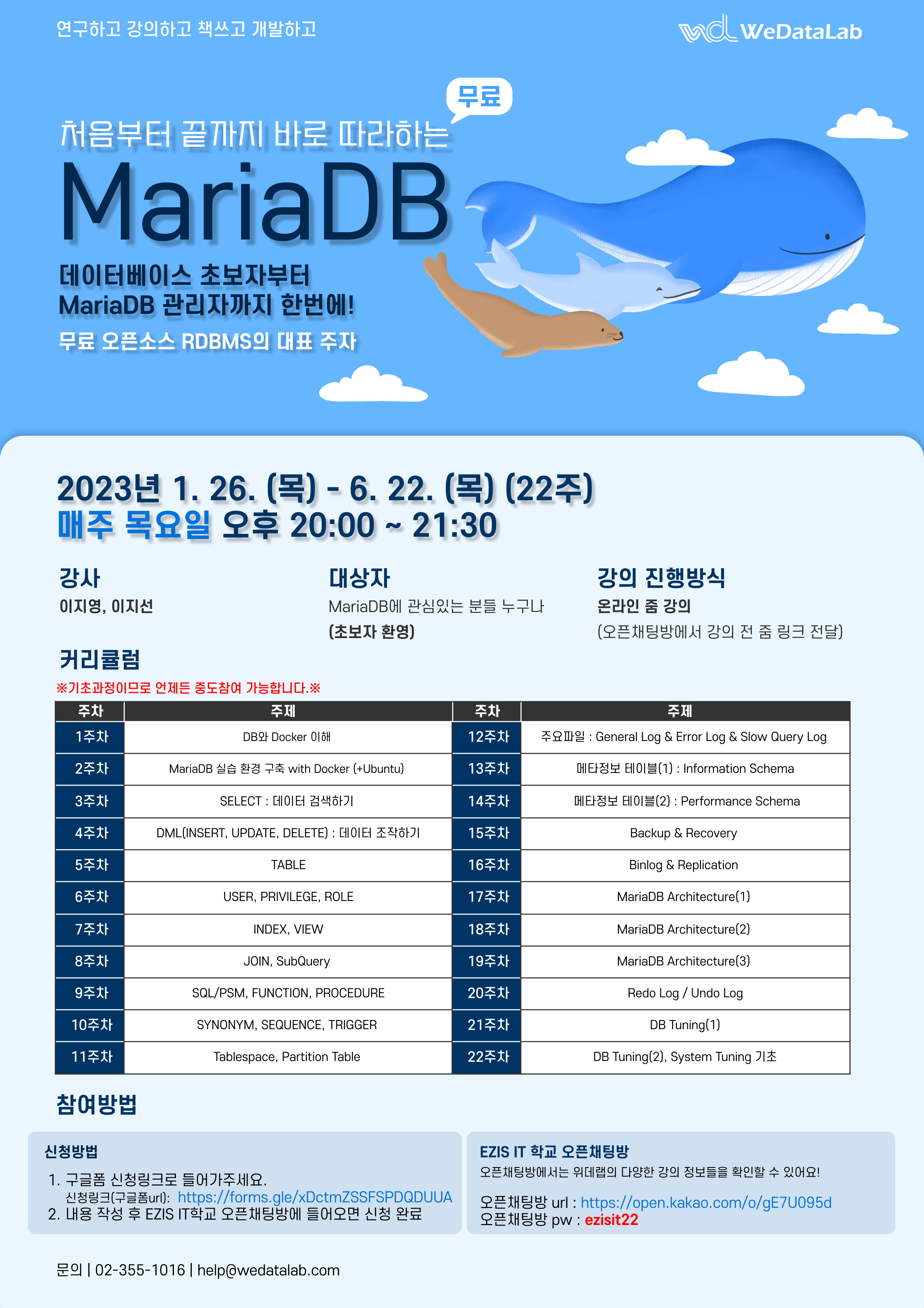 💡 무료 오픈소스 RDBMS의 대표 주자인 MariaDB가 궁금하시다면, 지금 바로 EZIS IT 학교와 함께하세요 🗯