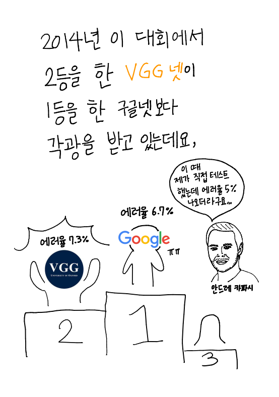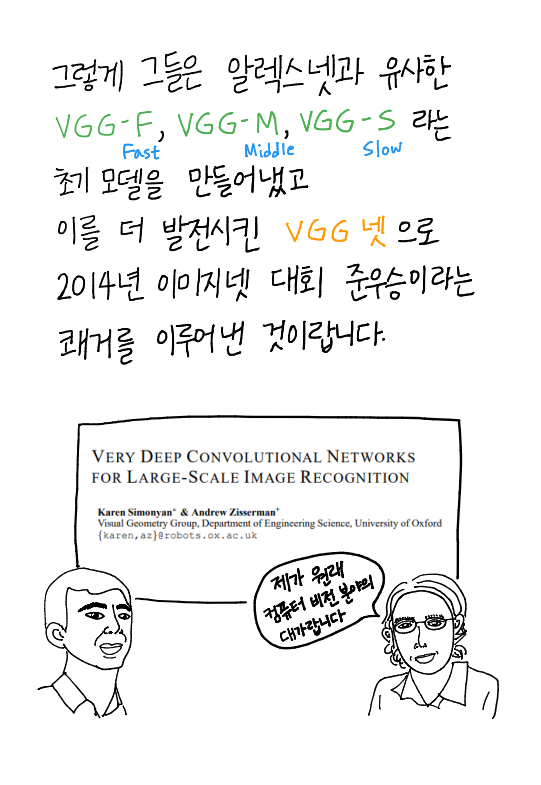 지세르만 교수는 제자인 카렌 시몬얀과 컴퓨터 비전에 딥러닝을 결합해보자는 아이디어를 냅니다.
