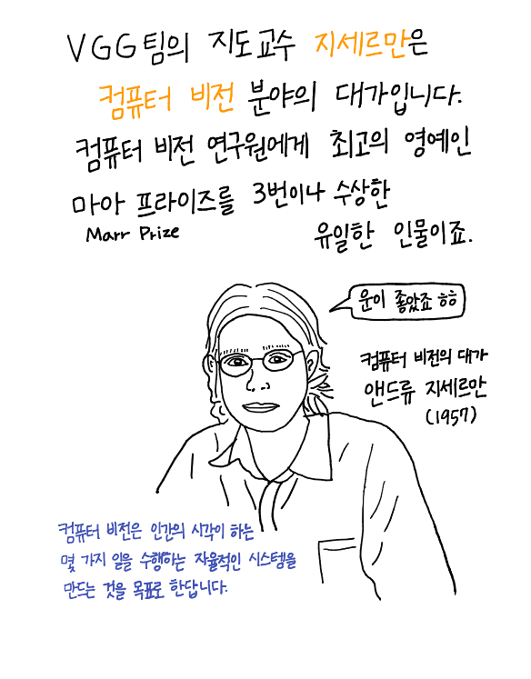 VGG팀의 지도교수 지세르만은 컴퓨터 비전 분야의 대가입니다.