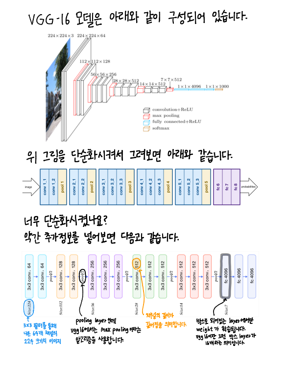 VGG-16 모델은 아래와 같이 구성되어 있습니다.