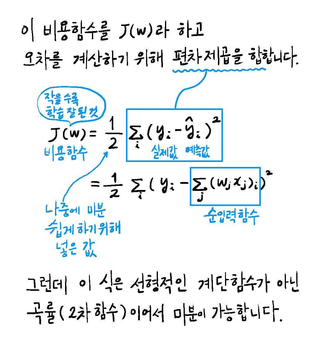 이 비용함수를 J(w)라 하고,