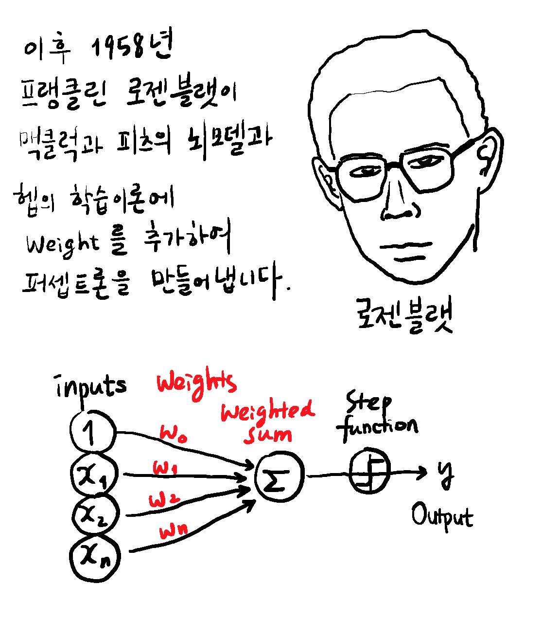 이후 1958년 프랭클린 로젠블랫 Frank Rosenblatt 이