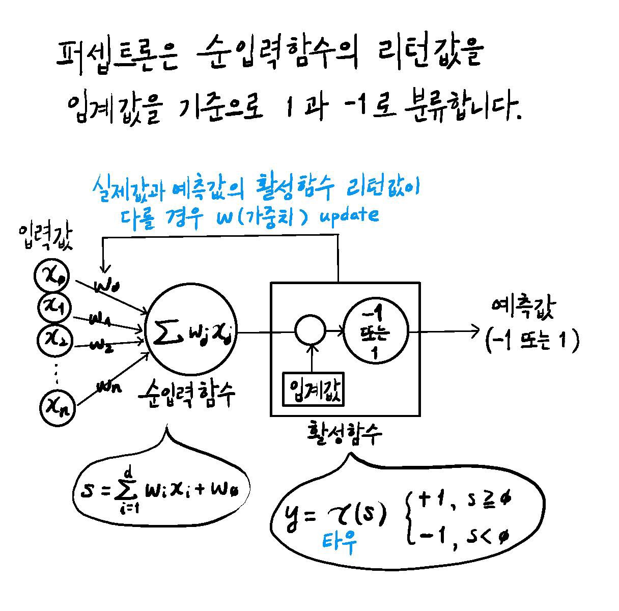 퍼셉트론은 순입력함수의 리턴값을